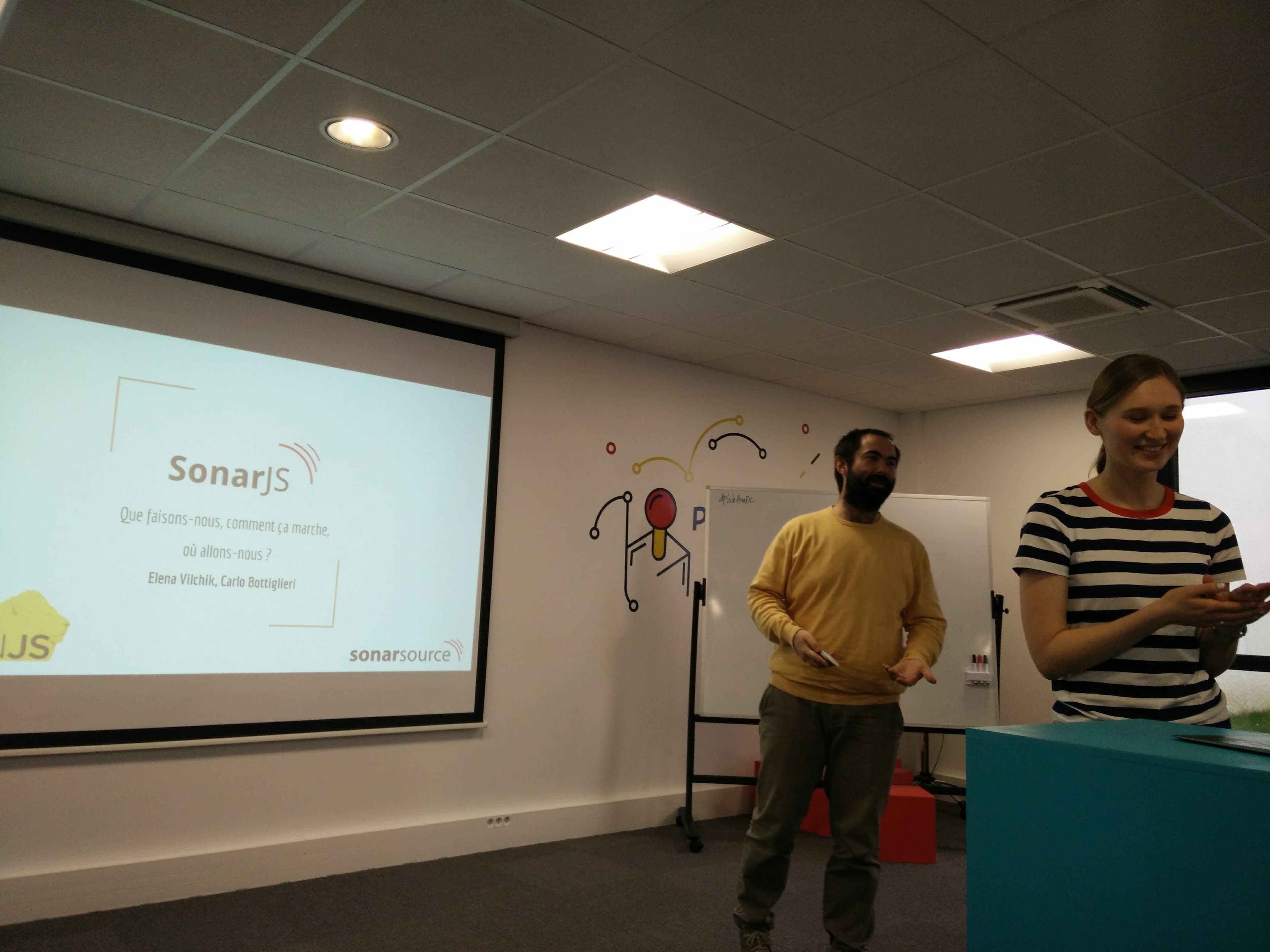 Retrouvez-nous pour discuter Javascript autour d'une présentation, et restez avec nous après autour de l'apéro ! Ce mois-ci, on parle de SonarJS avec Carlo Bottiglieri, développeur chez SonarSource.